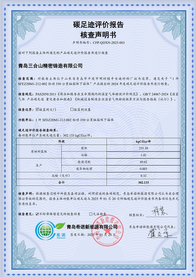 青岛三合山精密铸造有限公司碳足迹评价报告核查声明书
