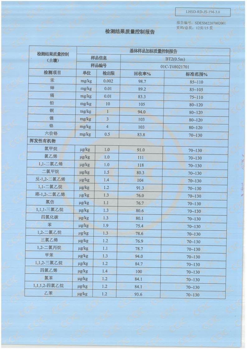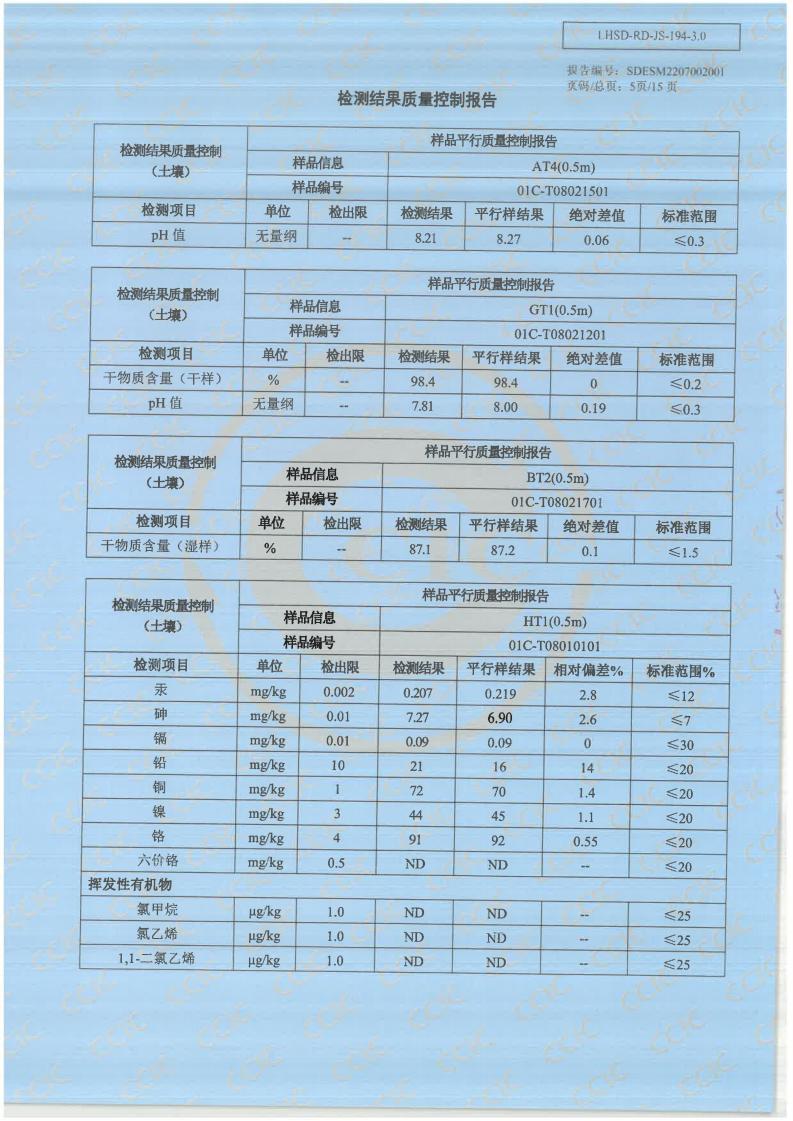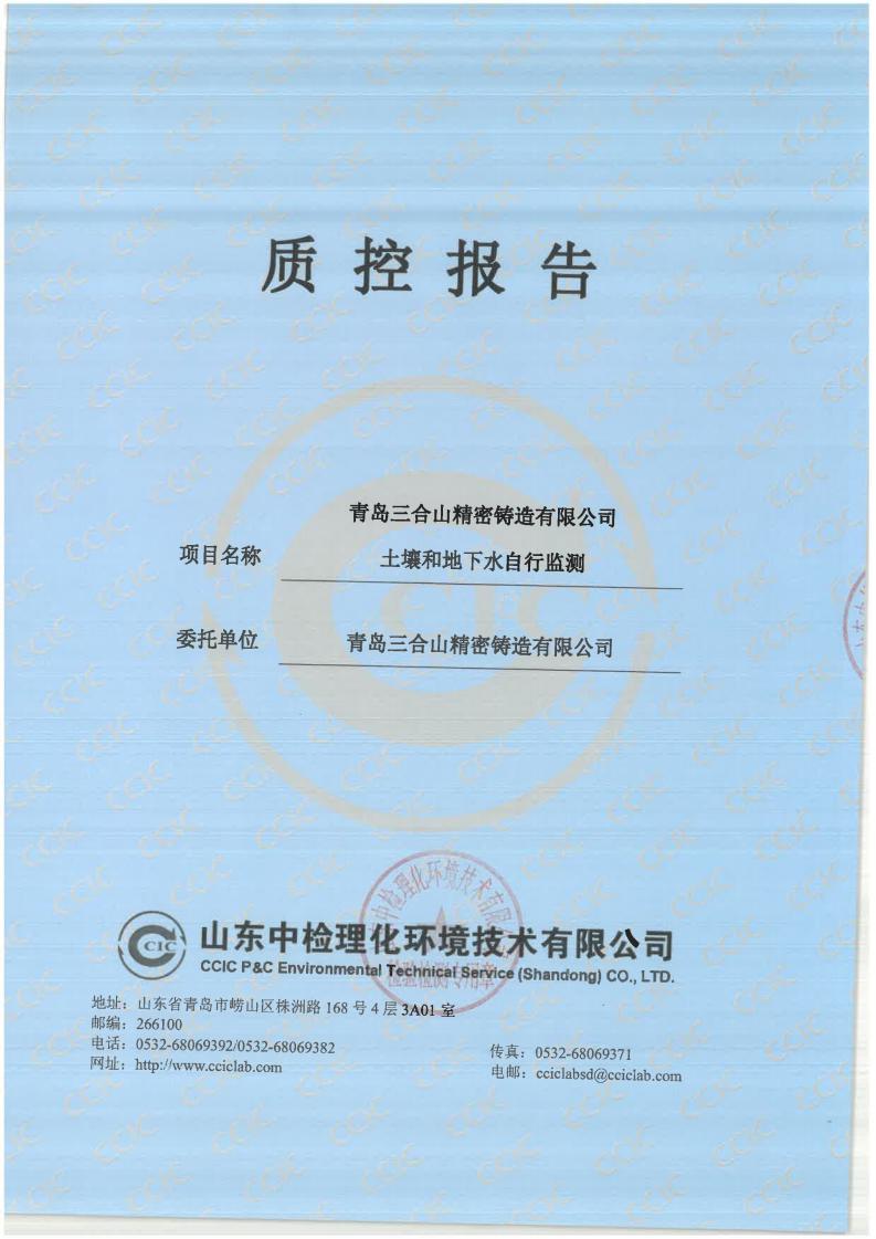 青岛三合山精密铸造有限公司2022年土壤质控报告公示
