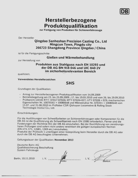 Manufacturer’s Product Qualification Issued By Deutsche Bahn AG